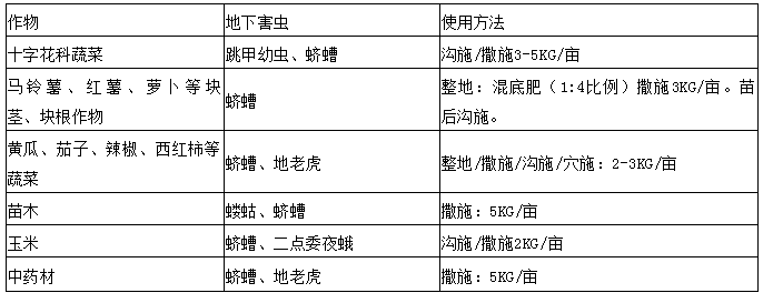 防治對(duì)象:大蒜根蛆 畝用量:5公斤